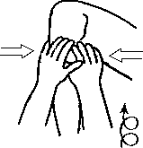 д) Клиент сидит, направив локти горизонтально в стороны и согнув их так, что его кисти находятся около груди, предплечья горизонтальны. Массажист нажимает своими руками сверху на локти клиента; клиент, сопротивляясь этому нажиму и не опуская локтей вниз, двигает ими вперед-назад (рис. 4.35).