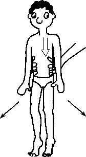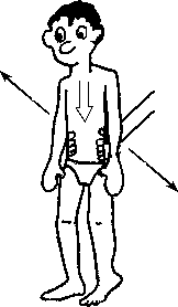 Кузнечик. Клиент стоит на полной стопе, расставив ноги на ширине плеч и несколько согнув колени, туловище прямое, руки опущены вниз (рис. 5.38). Массажист, стоя сзади, кладет руки сверху на бедра или плечи клиента, прижимает его к полу и перемещает вправо-влево. Задача клиента – не опускаться под нажимом массажиста. Это упражнение можно разнообразить, изменяя степень сгибания коленей клиента, ширину расстановки его стоп и величину угла между ними. Если массажист легок, а клиент силен, он может посадить массажиста себе на плечи, присесть и перемещаться вправо-влево самостоятельно.