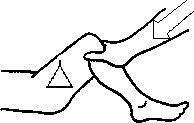 Рис. 5.12. Притирание в суставе между малоберцовой и большеберцовой костями.