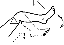 Рис. 5.28. Поперечное растяжение в коленном суставе. Вариант А, первый способ.