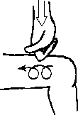 Рис. 4.38. Эллиптический массаж надмыщелков плечевой кости подушечками указательного и большого пальцев.