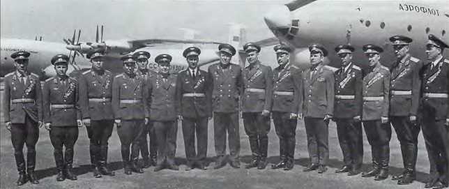 Первые экипажи из состава ВТА, освоившие Ан-22 (81-й В ТАЛ. 1971 г. В центре командир полка полковник Н.С. Моргис. зам. командующего ВТА генерал-лейтенант авиации Б.М. Константное, командир эскадрильи подполковник Л.Н. Хорошко.