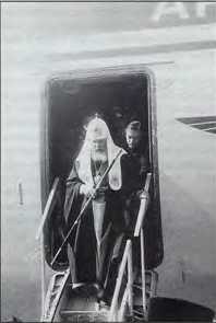 Потриарх Алексий II сходит с борта самолета ВТА Ан-124