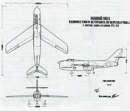 «… I.Построить истребитель-перехватчик с двумя двигателями РД-45, герметической кабиной и радиолокатором, со следующими данными: