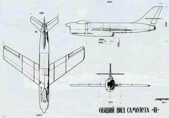 В ОКБ приняли весьма остроумное решение, расположить двигатели не рядом, о последовательно, тандемно. Подобная схема позволило получить меньший мидель фюзеляжа и в полной мере использовать эффект стреловидного крыло. Самолет получил заводской шифр «П» и обозначение Су-15,