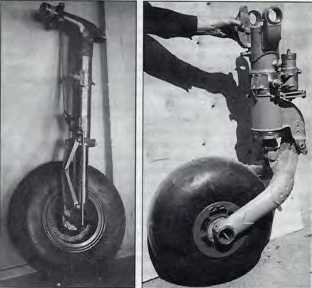 Шасси – трехколесное с носовым колесом. Передняя опора рычажного типа убиралась в фюзеляж по потоку. Основные опоры балочного типа убирались в крыло по направлению к фюзеляжу, при этом колесо поворачивались относительно опор на 90° и размещались в фюзеляже вертикально. В убранном положении ниши шасси закрывались створками и щит– коми, а опоры фиксировались механическими замками, В выпущенном положении опоры фиксировались гидравлическими и шариковыми замками. Но передней опоре устанавливалось нетормозное колесо размером 580х240А, а на основных – двухкамерные тормозные размером 900x275.