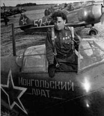 Необходимо упомянуть в нескольких словах об истории создания «Монгольского Арата». 5 марта 1943 г. 26-я сессия Малого Хурала Монгольской Народной Республики единодушно приняла решение о строительстве авиационной эскадрильи для Военно– Воздушных Сил СССР. Наименование «Монгольский Арат» свидетельствовало, что эскадрилья создавалась целиком на народные средства. 22 июня 1943 г. премьер-министр МНР маршал X. Чойболсан направил телеграмму главе советского правительства И.В. Сталину с просьбой принять денежные средства, на что Сталин 18 августа в ответ направил специальное послание: «Настоящим имею довести до Вашего сведения, что на средства, поступившие от правительства МНР на оборону нашей страны, построена эскадрилья боевых самолётов «Монгольский Арат».