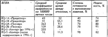 Таблица 2 Уровень надежности основных БПЛА вооруженных сил США