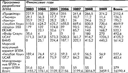 Таблица 4 Финансирование разработки БПЛА в 2003-2009 финансовых годах (в млн. долл.)
