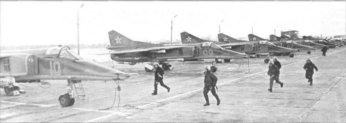 В числе первых МиГ-27 получили части западного направления – по заведенному порядку, развернутые в странах Варшавского Договора силы, противостоящие НАТО, требовали оснащения новейшей техникой в первую очередь. Оперативными планами Генштаба территория ГДР, Польши и Чехословакии рассматривалась как часть Западного ТВД, во втором эшелоне включавшего также БелВО и ПрибВО. Соответственно, в мирное время части 16-й ВА, развернутой в ГДР при более чем полумиллионной ГСВГ, объединялись в два авиакорпуса – северный, со штабом в Виттштоке и южный, со штабом в Виттенберге. В случае войны, с учетом предполагаемых действий на широком фронте Западного направления европейского театра войны, силы ГСВГ входили в состав соответствующих фронтов, включавших наземные и авиационные силы, а 16-я ВА усиливалась и разделялась на две армии, насчитывавшие по четыре авиадивизии. Их дополняли соединения ВВС и ПВО ГДР, имевшие в своем составе две дивизии. Мощь развернутых на Западном направлении армий была впечатляющей – по оценке командования, их сил было достаточно для того, чтобы с началом боевых действий в течение недели сломить сопротивление противника и выйти на рубеж Ла-Манша (за что группировку так и звали "Ла– Манш").