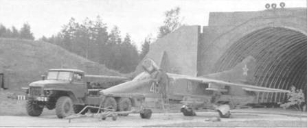 Поступление новой техники сопровождалось обустройством и переоборудованием аэродромов, на которых возводились арочные железобетонные укрытия, зоны централизованной заправки топливом и рассредоточения самолетов. Так, только на аэродромах 16-й ВА на территории ГДР было построено около 800 арочных укрытий, не считая подобных сооружений армии ГДР. Каждое из них, помимо размещения самолета, имело помещения для вспомогательных служб и личного состава и служило для размещения средств обслуживания, двух комплектов ПТБ и первого боекомплекта на случай вылета по тревоге. Все объекты имели сдвижные ворота и обеспечивали запуск двигателя самолета непосредственно внутри сооружения для быстрого выруливания машин из укрытий, которые, в свою очередь, были соединены рулежными дорожками с ВПП. Для этого в задней части укрытия имелись ворота и газоотводный канал, выходящий наружу и вбок. В обязательном порядке на стоянке каждого самолета на бетон наносили метки, соответствовавшие точной географической привязке этого места. Координаты "креста", вводившиеся в ПрНК-23, служили точкой отсчета при программировании маршрута, и при выставке ИKB колеса самолета следовало точно установить по этим меткам.