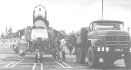 МиГ-27 готовится к буксировке с помощью АПА-5М