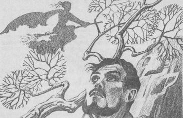 Доктор Э. не прекращал; но, опустив взгляд и заметив какую-то большую тень, он посмотрел вверх . У него тут же возникло впечатление, будто над головой пролетела огромная птица. Почти сразу доктор осознал, что это вовсе не птица. Что бы там ни было, оно почти тут же пропало из виду – он едва не бросил своё занятие, чтобы выбежать вперёд и приглядеться получше. Но, в тот же момент, загадочная фигура показалась вновь. Старуха даже не посмотрела вниз, на него. Она ничего не произнесла. Эстерхази никогда не видел её прежде – или видел ? – да, конечно, видел – но не в таком ракурсе. Она находилась прямо вверху, над головой и на чём-то ехала. Она сидела в дамском седле – как же иначе ехать женщине? – ибо, в противном случае, её юбки разлетелись бы и, не приведи Господь, чтобы при свете дня на глаза явилось то, чему полагается являться лишь ночью, да и то вслепую. Да, сидит она в дамском седле, на лице её свирепость; так кто же она такая и на чём разъезжает?