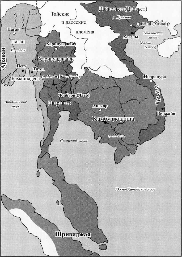 К 800 г. н. э. в Юго-Восточной Азии продолжал существовать и развиваться ряд государственных образований, сформировавшихся в более ранний период (с начала нашей эры). В центральной части современного Вьетнама находилось государство Чампа (Тямпа, Тьямпа) – государственное образование в континентальной части региона, сформированное аустронезийскими племенами и просуществовавшее до XV–XVII вв. Страна неоднократно меняла свое наименование: до середины VIII в. в китайских источниках она называлась Линьи, затем в течение столетия, когда ее центр сместился на юг, китайцы называли ее жителей хуанвань, и только с середины IX в. после возвращения столицы на север появилось название Чампа.