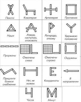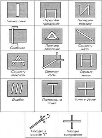 Код сигналов самолету с земли для составления донесений о наземных войсках своих и противника