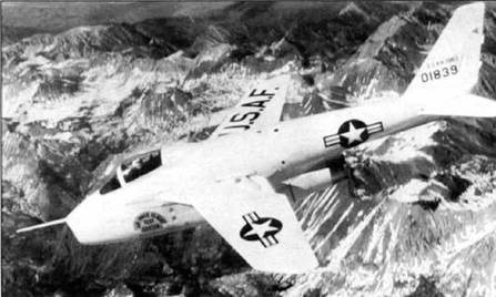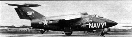 Опытный самолет Грумман XFIOF-I «Ягуар» с крылом изменяемой стреловидности. Первый полет совершил 19 моя 1952 г. Его испытания выявили серьезные проблемы с с управляемостью. Позже фирма Грумман оказывола Конвэр посильную помощь.