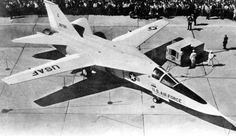 В 1959 г. Стэк сумел заинтересовать в результатах своих исследований командующего ТАК ВВС США генерала Ф Эвереста. Тот, что называется, проникся. ВВС уточнили требования к самолету с крылом изменяемой стреловидности в отношении дальности полета: