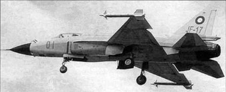 Первый полет истребителя Ченгду JF– 17 состоялся 25 августа 2003 г., через два дня прототип выполнил второй полет Разработка истребителя является совместной китайско-пакистанской программой. Индекс «17» по мнению западных, экспертов, обозначает, что «самолет является более современным, чем истребитель F-16». Макет истребителя JF-17 демонстрировался на выставке «Азиан Аэроспейс», проходившей в 1998 г. в Сингапуре. В разработке бортового оборудования истребителя принимали участие западные фирмы, в частности французская фирма SAGEM. Двигатель – российский РД-93. ВВС Пакистана требуется 150 истребителей для замены самолетов «Мираж», но первая партия истребителей JF-17 видимо не будет превышать 50 машин. На вооружение ВВС Китая самолет скорее всего не поступит, поскольку ставка сделана на истребители Су-27 и J-10. Интерес к истребителю JF– 17 проявляют ВВС Ирана