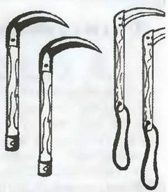 Кама, серп с деревянной рукояткой