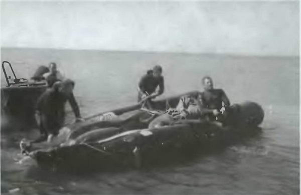 Потом зимой Лев Михайлович родил идею: а не нырнуть ли с котиком под лед? У нас, оказывается, много рыболовецких колхозов, занимающихся зимней ловлей. Но сети надо льдом ставить трудно. Рыбаки вынуждены делать через шесть метров проруби, сшивая их, словно ниткой, сетью. Возникла идея, а не попробовать ли ластоногих, те ныряли бы в прорубь на поводке, к которому прикреплена сеть, и выныривали через сто метров...»