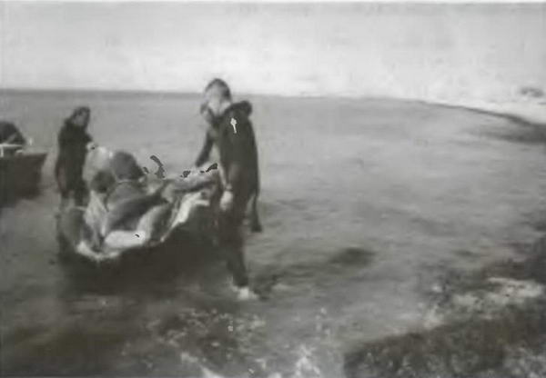 ...Пьяные, возбужденные от охоты люди втаскивали на берег лодку, в которой лежали несколько дельфинов. Тряпкой открывали роструп – нос, вставляли катетер под красный язык и вливали раствор тазепама. Дельфины тяжело дышали. Подошли мальчик и девочка, и стали их поглаживать, поливать водой. Тело дельфина должно быть постоянно влажным – иначе тепловой удар, страшные язвы...