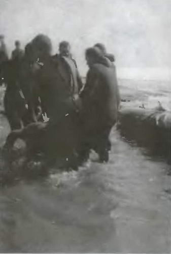 «Вон у косы еще один, – сообщает смотровой в бинокльс грузовика. – Одевайтесь».