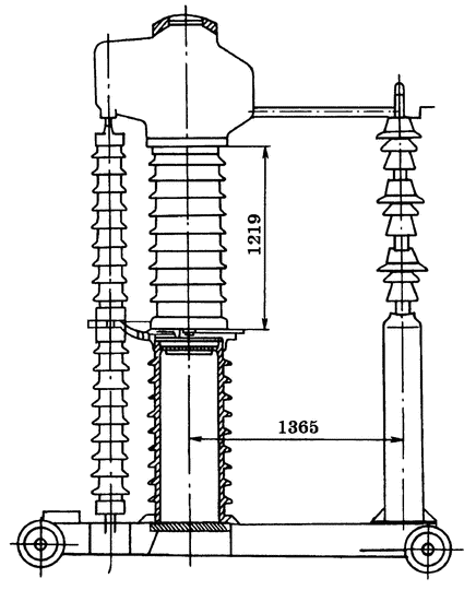 Рис. 6.10. Маломасляный выключатель на напряжение 110 кВ колонкового типа