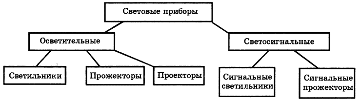 Одной из основных задач техники освещения и облучения является перераспределение энергии излучения источника в заданном направлении пространства. Эту цель выполняет целая группа приборов, называемая световыми приборами (СП). Они служат для концентрации потока излучения в объеме и на поверхности. С их помощью можно изменять физические свойства излучения, например спектральный состав или поляризацию. По своему функциональному назначению и конструктивному исполнению СП делятся на две большие группы: светооптические приборы и светильники. Приборы первой группы имеют светооптическую систему, включающую источник излучения и оптическую систему (отражающую, преломляющую). Они перераспределяют и концентрируют поток в пределах небольших телесных углов. К ним относятся прожекторы (военные, авиационные посадочные, киносъемочные, театральные, общего назначения для освещения промышленных и общественных объектов), фары (автомобильные, самолетные, транспортные и т.д.), маяки (морские, авиационные и т.д.), светосигнальные приборы (светофоры), различные проекционные аппараты. Светильники – приборы, включающие источник излучения и осветительную арматуру. Они предназначены для перераспределения потока излучения внутри значительных телесных углов и освещения объектов, находящихся на небольших расстояниях от прибора. К ним относятся светильники для освещения помещений (производственных, общественных, жилых, салонов транспортных средств и т.д.), открытых пространств (улиц, дорог, карьеров, туннелей, архитектурных сооружений и т.д.), объектов, находящихся под водой, под землей, в космосе.