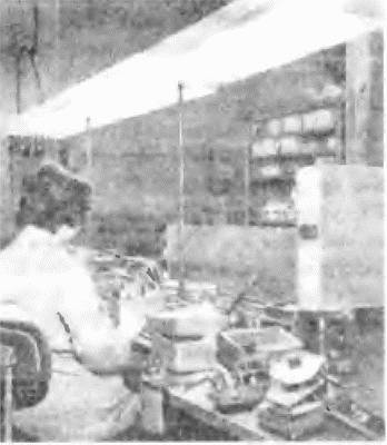 а – освещение прядильного цеха; б – местное освещение шлифовального станка; в – местное освещение конвейера на заводе низковольтной аппаратуры