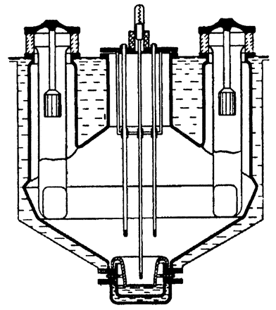 Рис. 11.1. Ртутно-выпрямительиый шестианодный агрегат с водяным охлаждением на ток 500 А и напряжение 600 В (1926 г.)