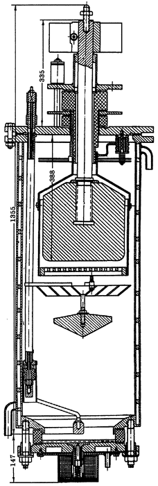 Рис. 11.2. Одноанодный ртутный вентиль с водяным охлаждением (1946 г.)