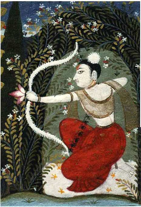 Лук Камы сделан из сахарного тростника, стрелы – из бутонов лотоса, а тетива сплетена из жужжащих пчел.
