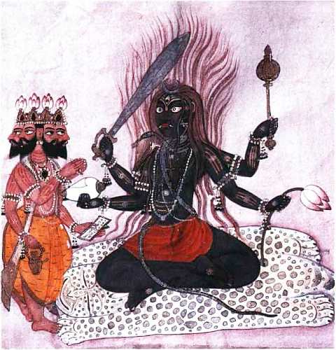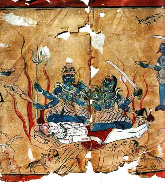 Кама всегда готов вызвать любовь у людей и у богов, как мы это увидим. Сати, не в состоянии выносить пренебрежительное отношение отца к ее супругу Шиве, покончила с собой, бросившись в огонь. Потрясенный Шива ушел в Гималаи, чтобы созерцать, воздерживаться и пребывать в аскезе. Рядом поселилась горянка Парвати, смиренная и почтительная. В молчании она занимала ту же позу, что и он, выполняла те же движения, надеясь привлечь внимание и завоевать его любовь. В ней-то и перевоплотилась Сати.