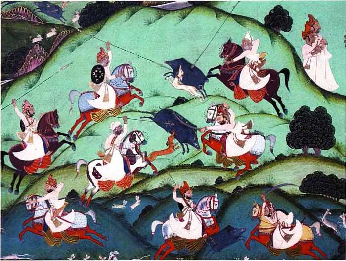 Охота на кабанов. XVI в. Фрагмент миниатюры