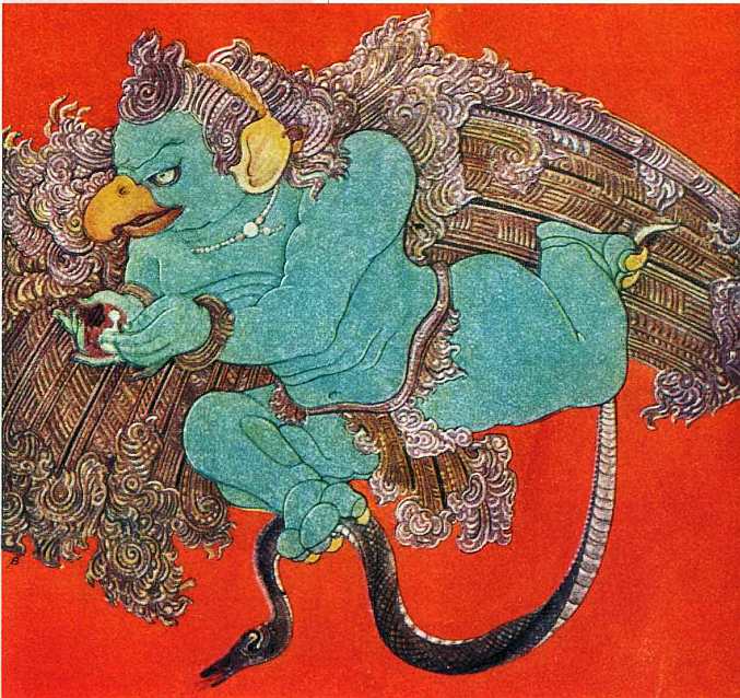 Похищение Сомы демоном: орел Гаруда. Иллюстрация к: Нанда Лал Бозе. Мифы индусов и буддистов. 1926 г.