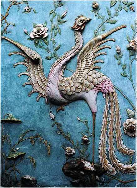 Феникс – Фен-хуан. Раскрашенный барельеф. Храм в Макао