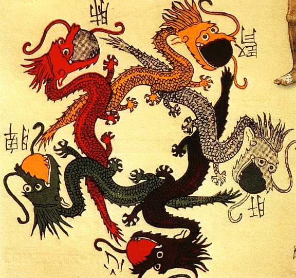 Они представляют укрощенные внутренние и внешние силы. Рога и усы на их головах символизируют ян, а чешуя – инь.