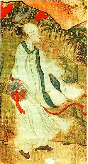 Бессмертный, играющий на флейте в раю. Середина XIX в. Живопись. У него в кармане священный гриб, который дарует бессмертие.
