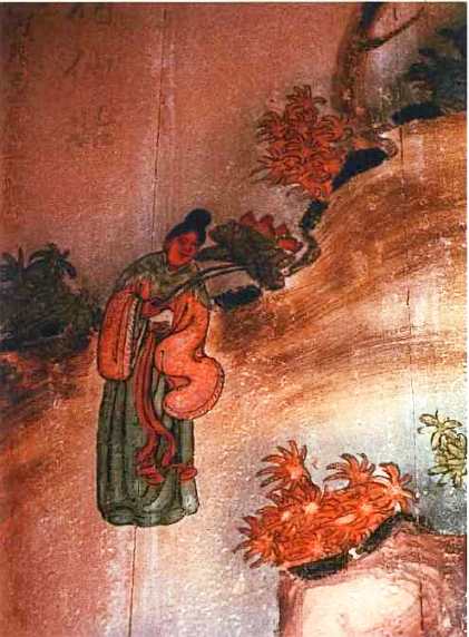 Хэ Сянь-гу, одна из восьми бессмертных. VII в. Живопись на дереве. Китайский храм в Пенанге (Малайзия)