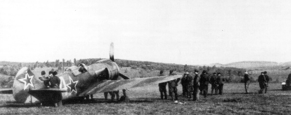 Потерпевший аварию Ла-5ФН с/н 39213479, ранее проходивший ремонт в Куновице. Помимо нового камуфляжа и опознавательных знаков эта машина (вероятно по ошибке) получила чехословацкий регистрационный номер La5-3459.