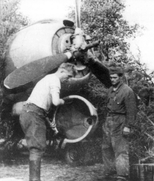 Предполетное обслуживание Ла-5ФН с/н 39291869 (самолет подпоручика Л. Валоушека, б/н 69) на аэродроме Зольна. Одно из немногих фото, на котором видна конструкция втулки винта и внутренняя часть кока.