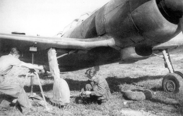 Авиаремонтное предприятие в Куновице (Моравия) ремонтировало большую часть чехословацких боевых самолетов, в том числе и Ла-5ФН. На снимке хорошо видны новые щитки шасси, которые еще предстоит окрасить.