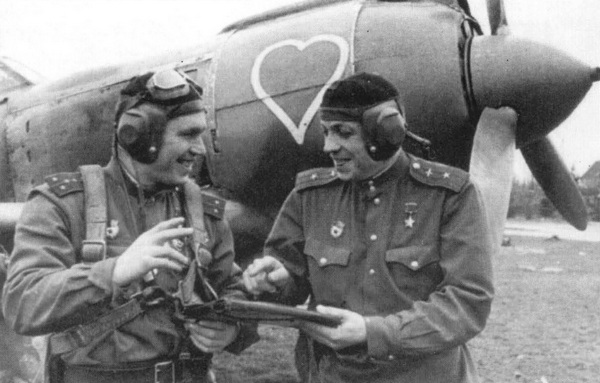Фотография на память на фоне Ла-5ФН б/н 31, сделанная в День Победы, 9 мая 1945 года, на польском аэродроме Балице под Краковым.