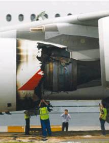Заметим, что остальные четыре перевозчика, эксплуатирующие самолеты А380, полеты на них не прекращали. Поскольку инцидент имел место с двигателем «Трент» 972 компании «Роллс– Ройс», то он мог иметь отношение только к лайнерам «Квантаса», «Сингапурских авиалиний» и «Люфтганзы» (самолеты «Эмирейтс» и «Эр Франс» оснащаются силовыми установками GP7270 консорциума «Энджин Альянс»). Сингапурские и германские самолеты имеют аналогичные двигатели «Трент» 970, но их операторы после оперативных проверок сочли, что безопасности полетов их А380 ничто не угрожает. Уже во второй половине дня 4 ноября руководство «Сингапурских авиалиний» объявило о возобновлении полетов своих А380 (рейсы были задержаны лишь на несколько часов). Менее чем за сутки техперсоналу удалось проверить двигатели и сделать вывод о возможности дальнейшей их эксплуатации. Из расписания были временно выведены только три из 11 сингапурских А380, которые решено было подвергнуть более тщательным проверкам и, возможно, замене нескольких двигателей. «Люфтганза» же, имевшая к 4 ноября четыре А380, сообщила о необходимости замены всего одного двигателя – ее рейсы продолжались практически без изменений.