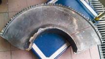 Внизу: фрагмент разрушившегося диска турбины промежуточного давления, упавший на индонезийский остров Батам