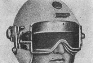 Встречалось в печати описание и других защитных очков, разработанных в США для морских летчиков (рис. 2). Специальная светонепроницаемая жидкость поступает здесь из резервуарчика, размещенного, как и фотоэлемент, в шлеме над стеклами очков.