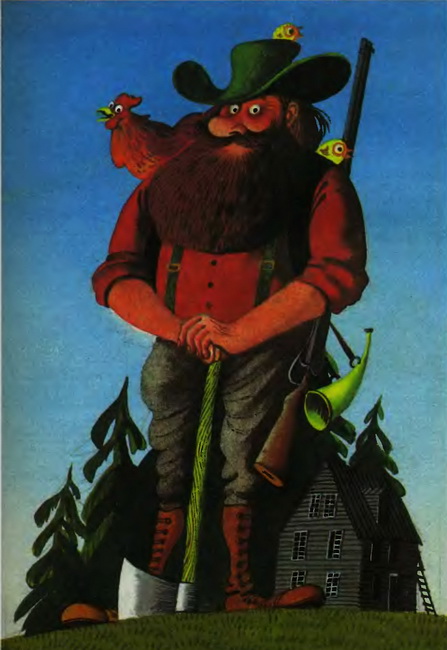 В лагерь лесорубов Поль пришел, когда был еще совсем мальчишкой. Правда, тогда уже он вымахал ростом выше самого высокого из лесорубов и не хуже их справлялся с работой. А уж в рог трубил, сзывая лесорубов на обед, и вовсе громче всех. До того громко он однажды протрубил, с такой силой подул в большой рог, что сдул человека с луны. И пришлось бедняге дожидаться следующей ночи, когда снова взойдет луна, чтобы вернуться домой.