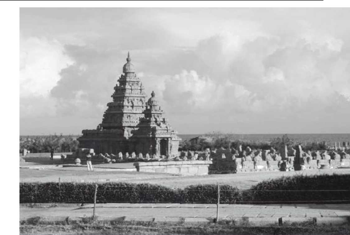 Но больше всего Махаб а липу р ам славен своими древними храмами. Когда-то этот небольшой теперь городок был огромным портом, в который заходили корабли из стран Юго-Восточной Азии, Китая и Японии. Махабалипурам (это название переводится как «город великих воинов») известен с VII века, с тех пор как после распада могущественной империи Гуптов в Индии образовались многочисленные государства и княжества. На юго-востоке особую власть имела династия тамильских правителей Паллавов. Тамилы по сей день считают себя потомками дравидов, доарийского населения Индии, а следовательно, носителями исконно индийской культуры. Их язык действительно очень древний и имеет дравидийское происхождение. Как и сейчас, в VII в. тамилы стремились доказать свое превосходство над северянами-ариями. Династия Паллавов управляла регионом от южной Андхры и западной Карнатаки до Танджавура в современном Тамил-Наду. Столицей государства был Канчипурам, а Махабалипурам играл роль главного порта.