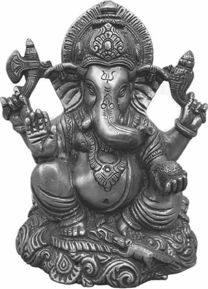 Несколько версий индийские мифотворцы предлагают и для объяснения другой особенности внешности Ганеши – у слоноголового человечка только один бивень. Согласно одной из них, он лишился одного бивня за добросовестное исполнение своих обязанностей сторожа, не пустив в покои Шивы Парашураму (шестое воплощение Вишну). Парашурама, который вообще ни с кем не церемонился, отсек ему один бивень своим топором. По другой версии, Ганеша сам использовал один бивень в качестве оружия, отломив его и поразив великана Гаджамукху («Слоноволикий» – снова «слоновый мир»), который превратился после этого в крысу, ставшую впоследствии ездовым животным (ваханой) Ганеши. Есть также легенда, рассказывающая о том, что, записывая «Махабхарату» под диктовку Вьясы, Ганеша сломал перо и, стремясь не упустить ни слова, отломил бивень и стал писать им.