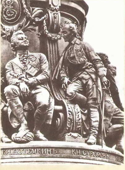 Князь Потемкин и князь Суворов. Деталь памятника Екатерине Великой